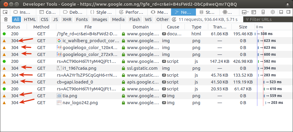 You can observe this by opening a website you frequently visit or reloading an already loaded page. If you check the network tab in the developer tools, you will probably notice a few 304 Not Modified responses for certain assets.