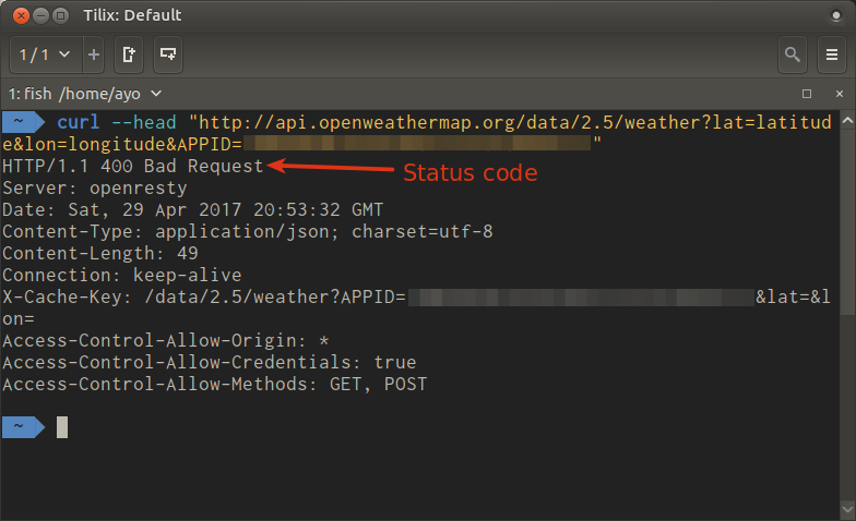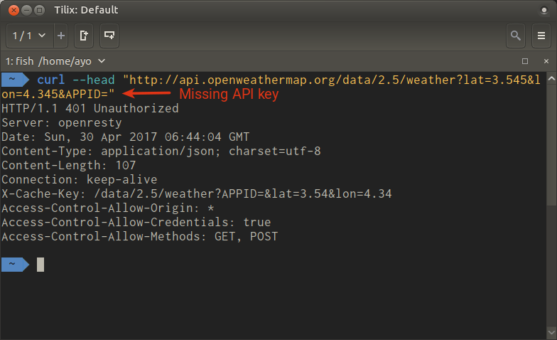 $ curl --head "http://api.openweathermap.org/data/2.5/weather?lat=latitude&lon=longitude&APPID=YOUR_API_KEY"