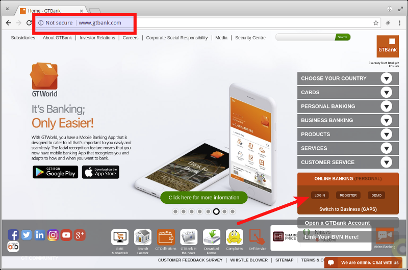 For example, on the above bank website, the homepage is loaded over an insecure HTTP connection. But it contains a link to the login page which is indeed served over HTTPS.