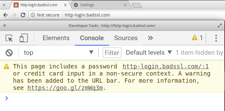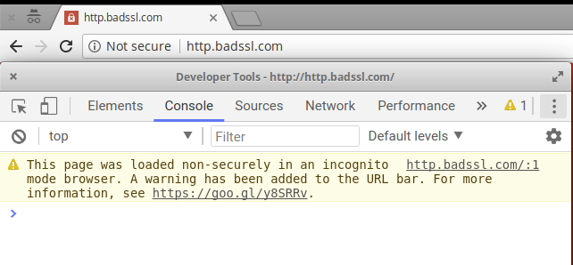 In addition, this “Not Secure” warning is shown for all HTTP pages in incognito mode regardless of whether they contain an input field or not, perhaps because users have a higher expectation of security when going incognito.